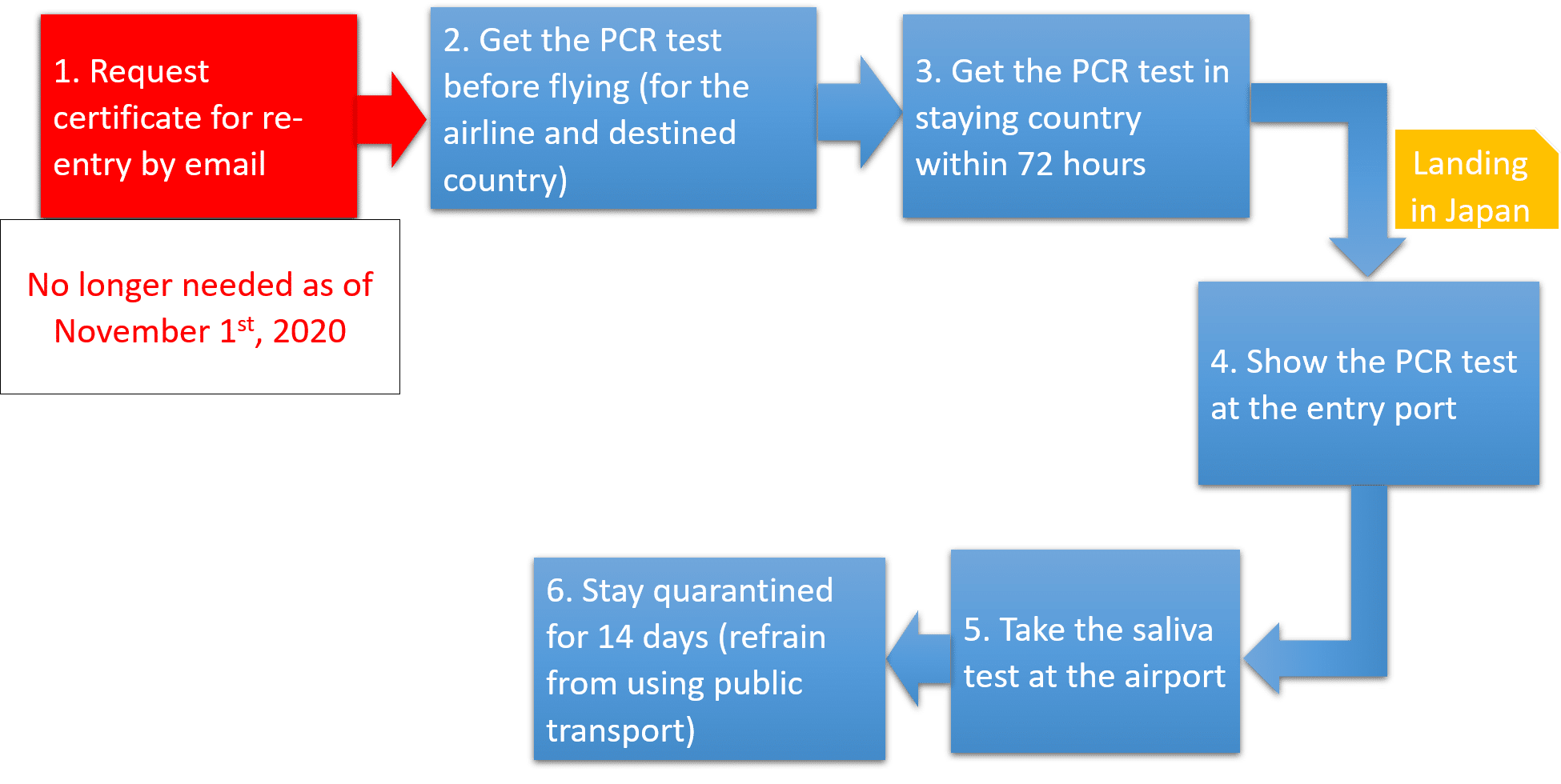 These procedures are COVID-19 specific measures that are on top of the normal re-entry procedures. For more details please refer to the website of the Ministry of Foreign Affairs of Japan.