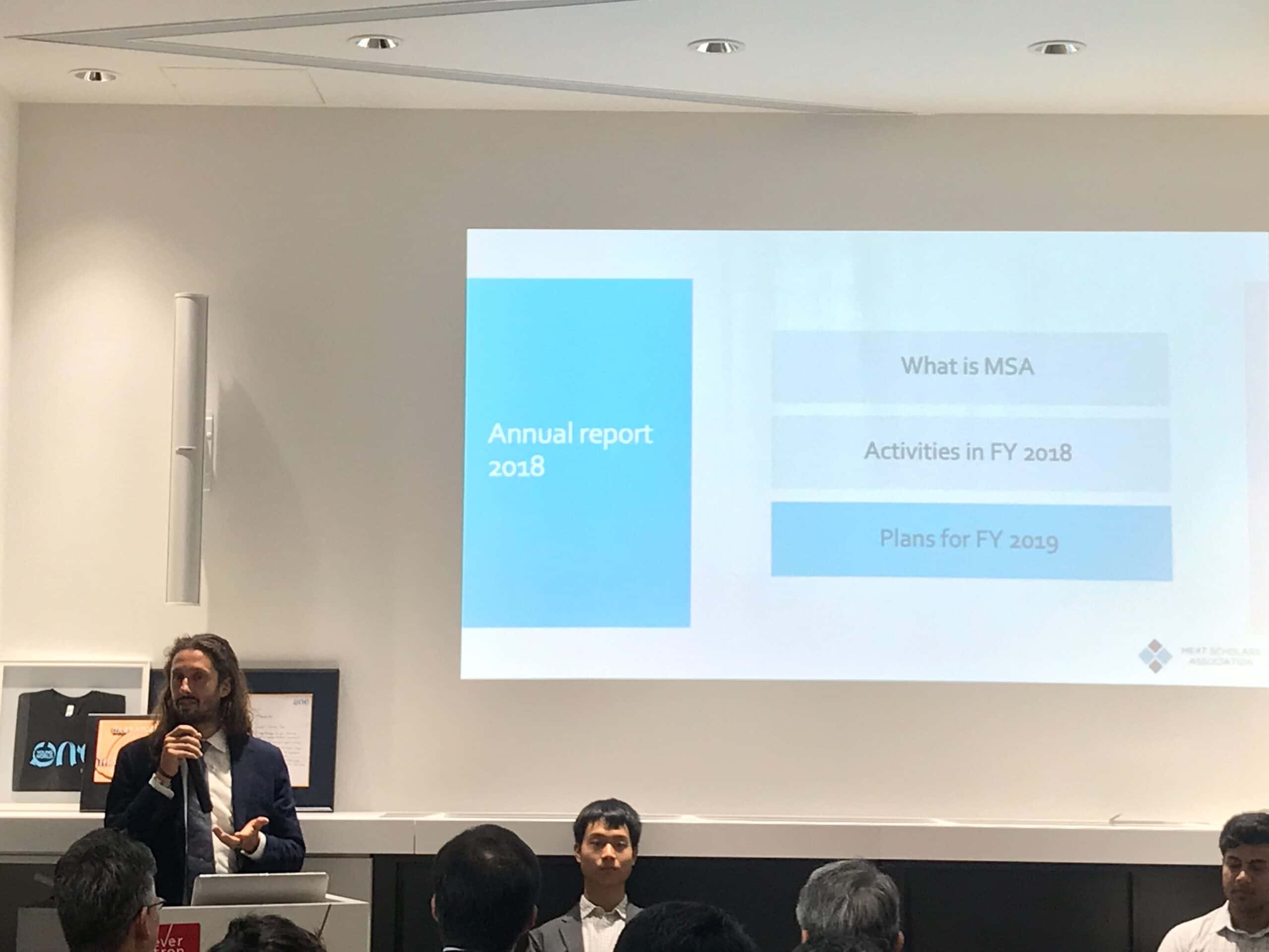 Following the opening addresses our president and a few committee members presented the annual report of MSA’s activities in the last fiscal year (Aug 2018 to July 2019), focussing on our achievements in the media and sponsors department.
