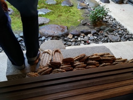 After the introductory gathering, we were offered to wear old style Japanese slippers for passing through the path on the garden to the ceremony place. We enjoyed the peaceful garden blooming with elegant autumn beauty. With each stepping stone, we let go of our emotional weights one by one and looked at ourselves from above such as to get purified before entering the ceremony place.