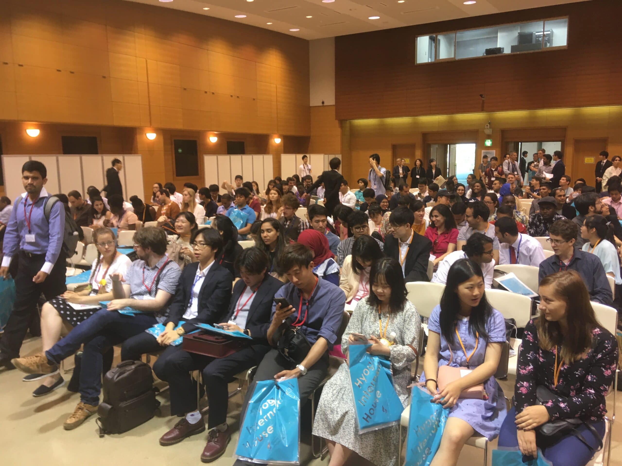 To conclude the main reception, a group picture of all attendees was taken, and the scholars started leaving the Main Hall to visit the booths, seminars and workshops. MEXT, JASSO and MSA prepared several fun workshops and insightful seminars for the attendees to experience Japanese culture and to learn more about life as an International student in Japan. Japanese Culture Experiences were offered in the form of a Noh theatre workshop led by Ms. Miki Miyauchi from the National Noh Theatre, as well as Japanese Tea Ceremony kindly organized by Hyogo University. In parallel, a multitude of seminars were offered by Senior MEXT Scholars and alumni, such as “Job hunting in Japan”, led by Ms. Elif Berna Var, “Developing your own research network” led by Mr. Fernando Palacio, “Becoming a researcher in Japan” by Ms. Putri Pratiwi, “Advice for your research career” by Ms. Julie Taeko Gramlich, “Work as a university teacher” by Ms. Yulia Burenina, and “The experience of research activities with books” by Ms. Tatiana Berezikova.