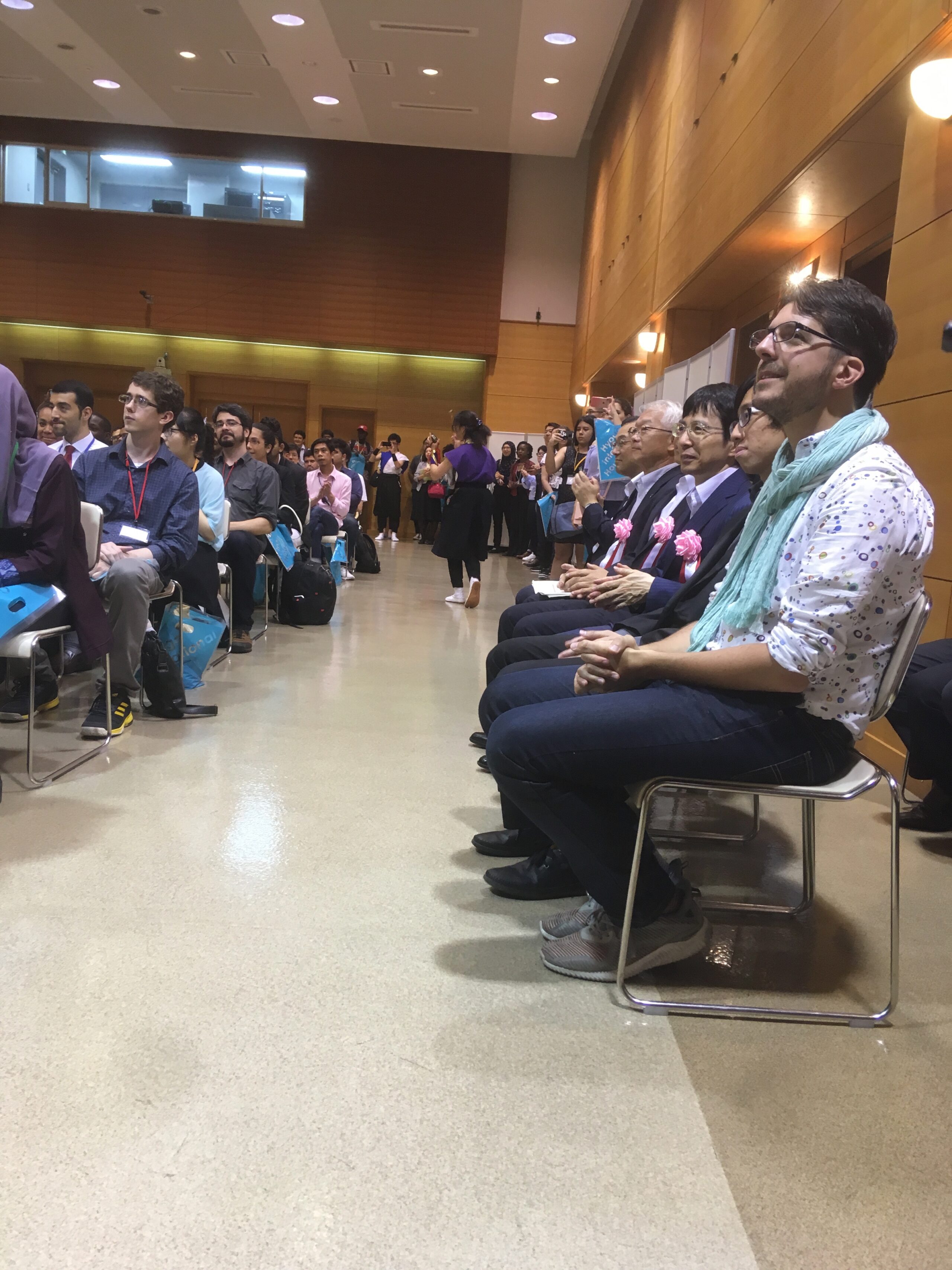 The ceremony concluded with an energizing talk and presentation by the always enjoyable Gustavo Dore, CEO of Motify Inc. and MEXT Scholarship alumnus. Gustavo won the audience of scholars and officials by uniquely framing the realities of successful social adaptation and professional life in Japan, through the prism of his personal, inspiring story. His talks are always a strong call to action, and as usual, he kindly stayed around after his talk to offer a more specific workshop that went deeper into those issues, one that is always very popular with new scholars!