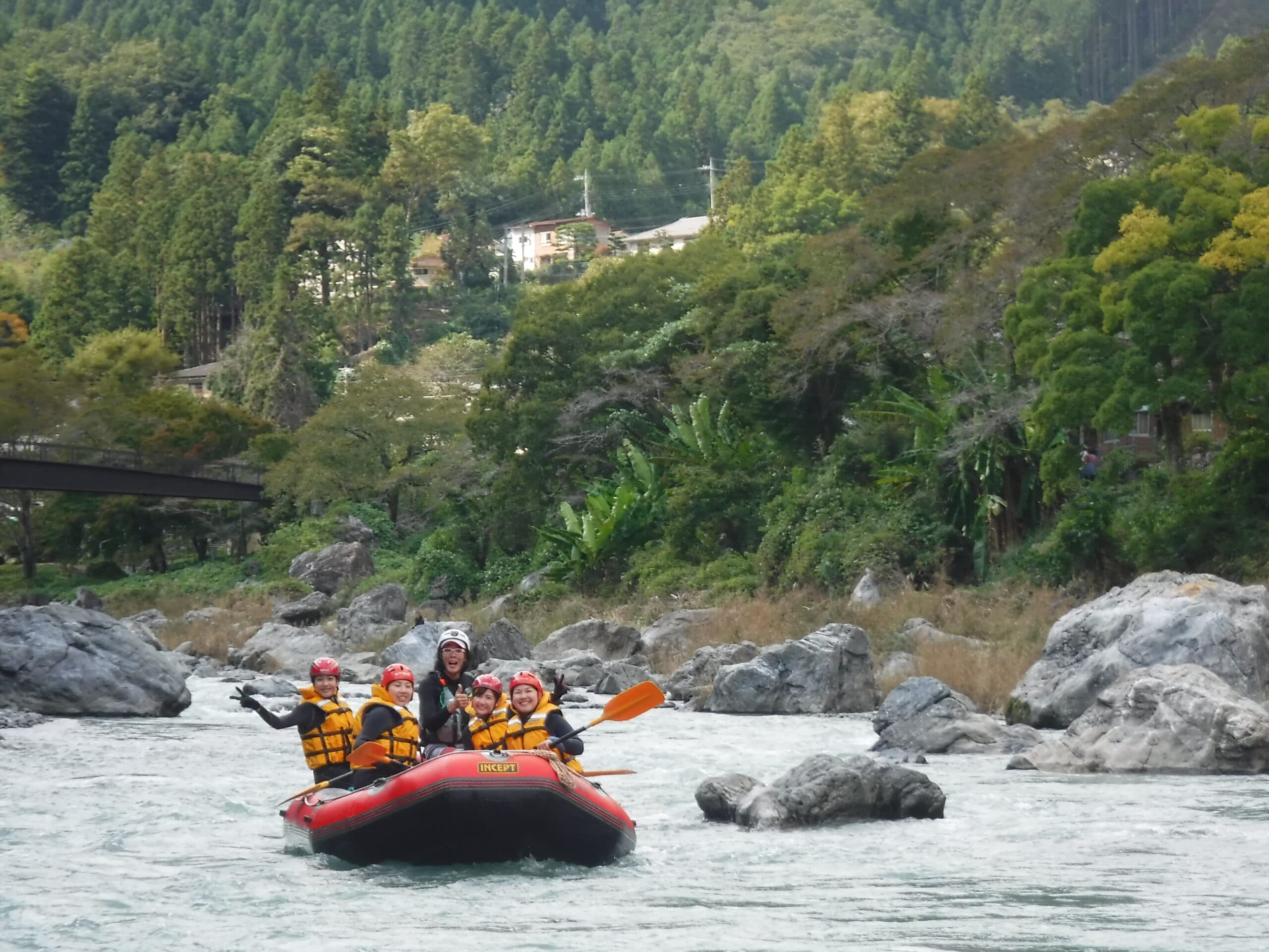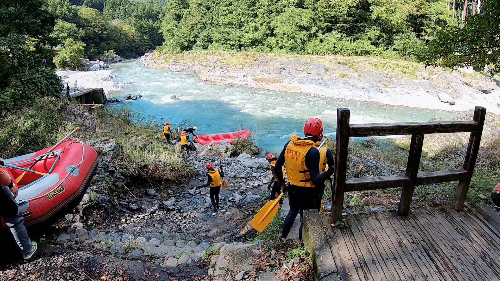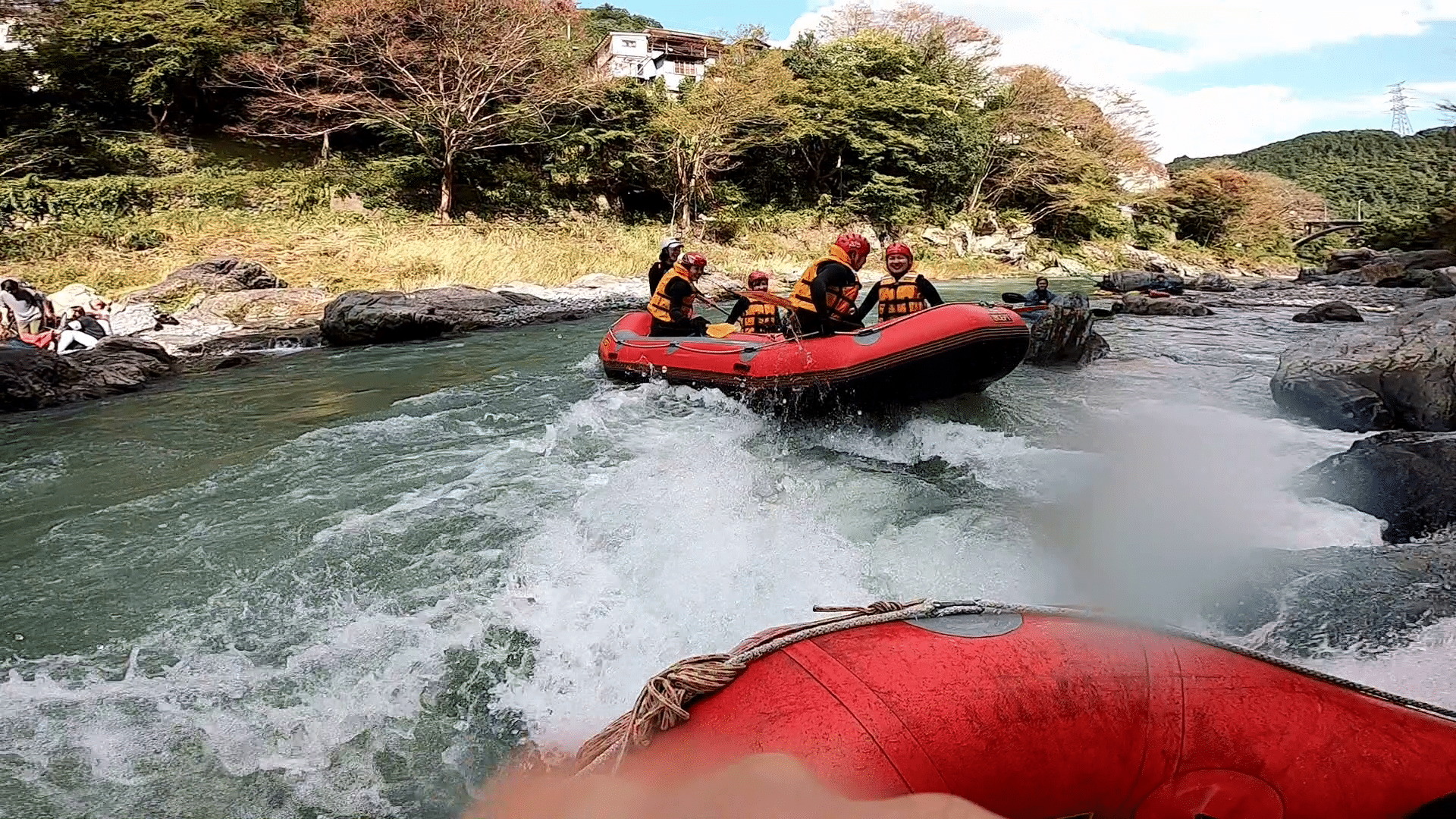 Six members of the Kanto regional team gathered on Saturday morning to catch the train to Okutama. The sunny sky and a light autumn breeze made the day ideal for an outdoor activity. Upon arrival at JR Ome Station, we were picked up with a van by our rafting guide from the company “Forest & Water Okutama”, who drove us to their base camp.