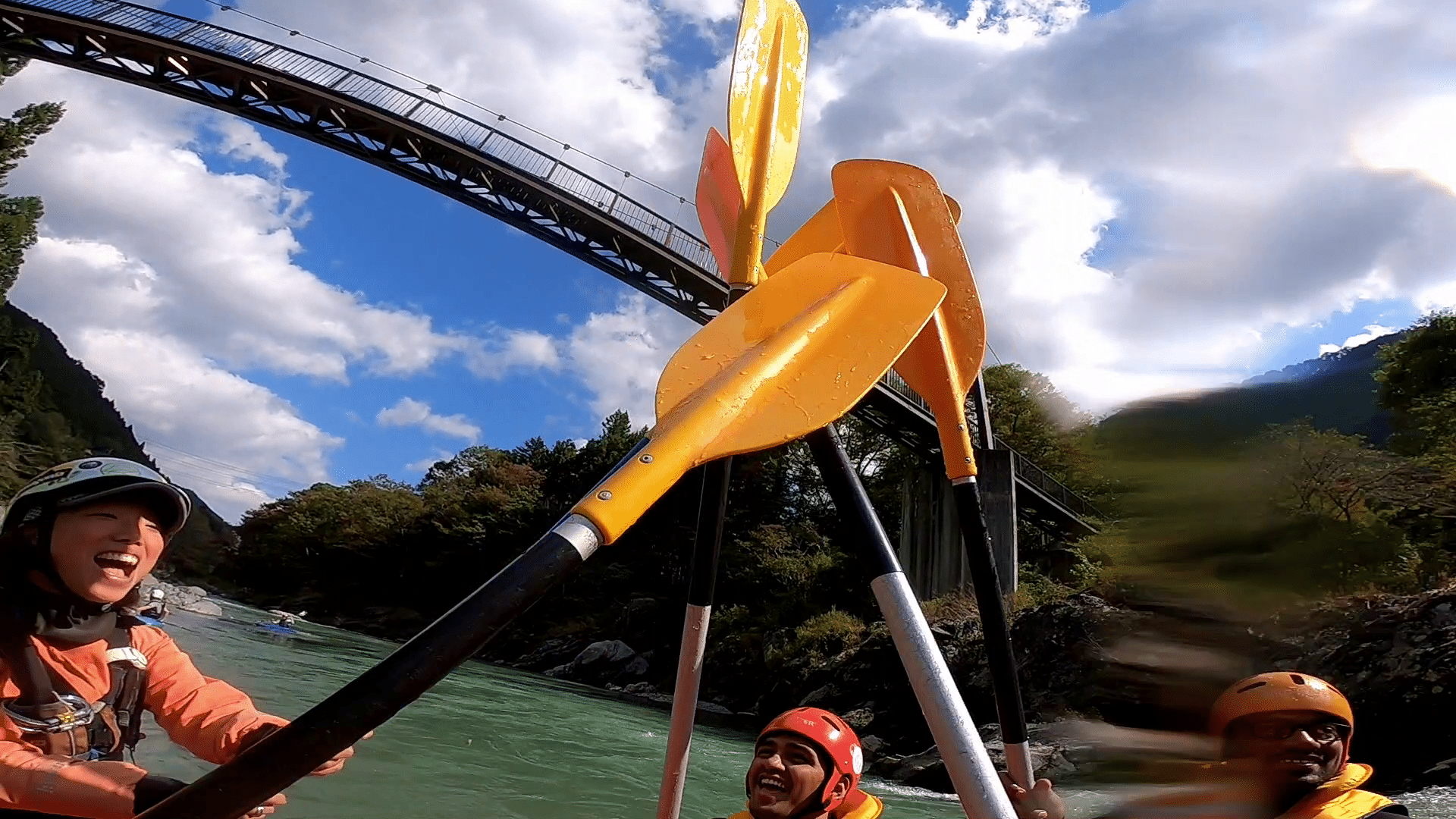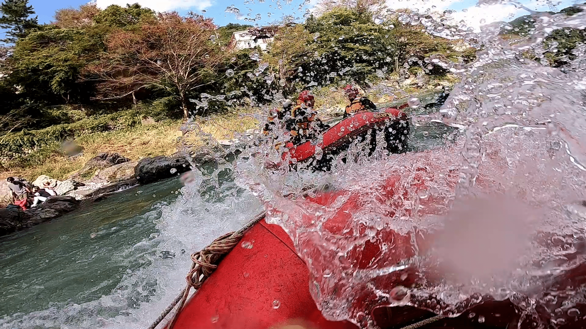 Nevertheless, at this time of the year, river waters are not quite deep and currents are not so strong, so we could enjoy a splashing experience without it being really physically demanding. And so we boarded our raft and glided into the waters of the Tama River!