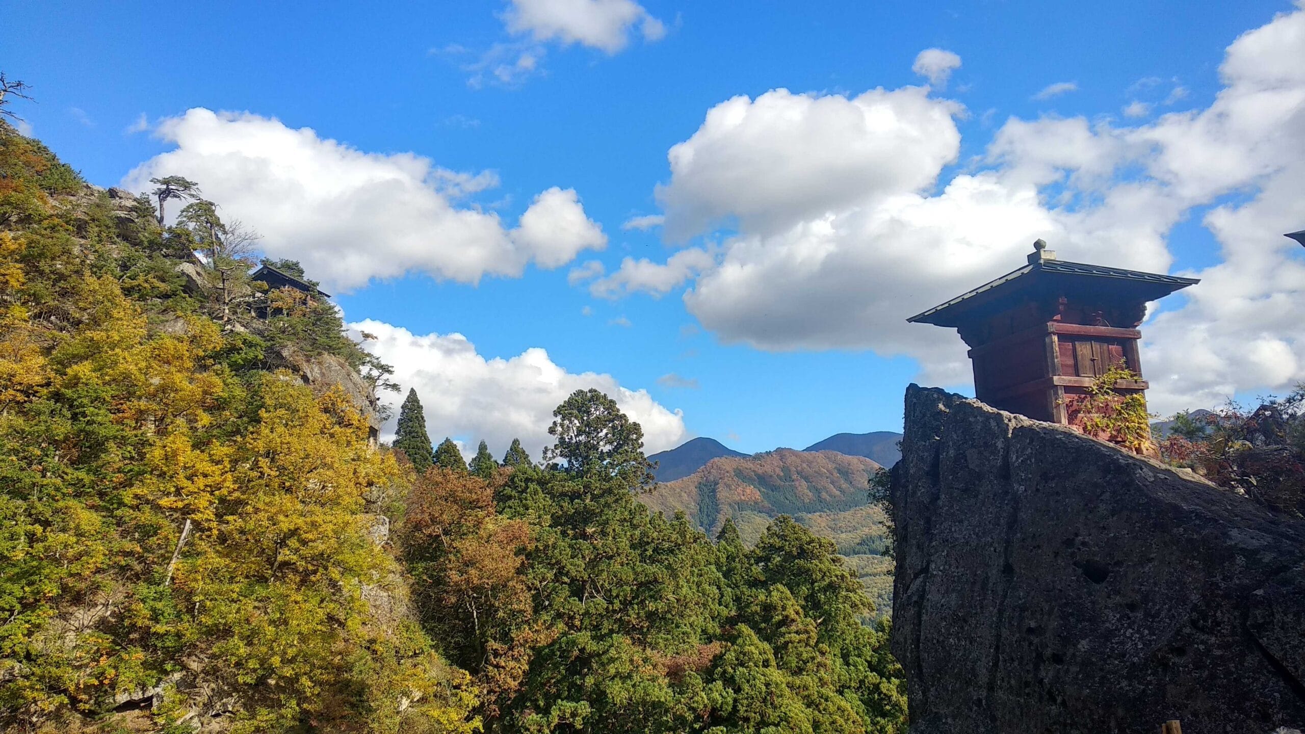 Soon after we arrived at the station, we got the admission tickets and started to hike up from the base. The hiking trail was easy-to-moderately difficult with eye-catching shrines, enchanting stone lanterns, wooden wheels, and limestone caves along the way through the beautiful cedar forest. The 1000-steps climb to the top took us about 30 minutes where we were rewarded with a breathtaking view overlooking the Tachiya River Valley. There were multiple observation decks at different levels that offered wonderful views of the valley.