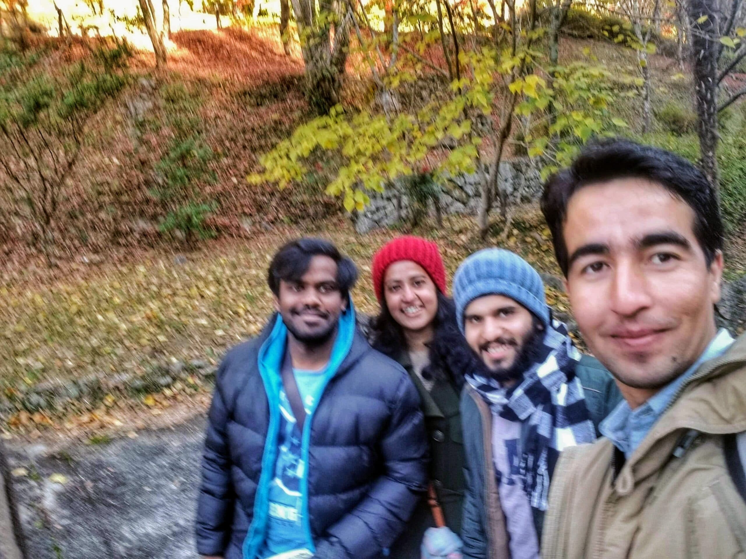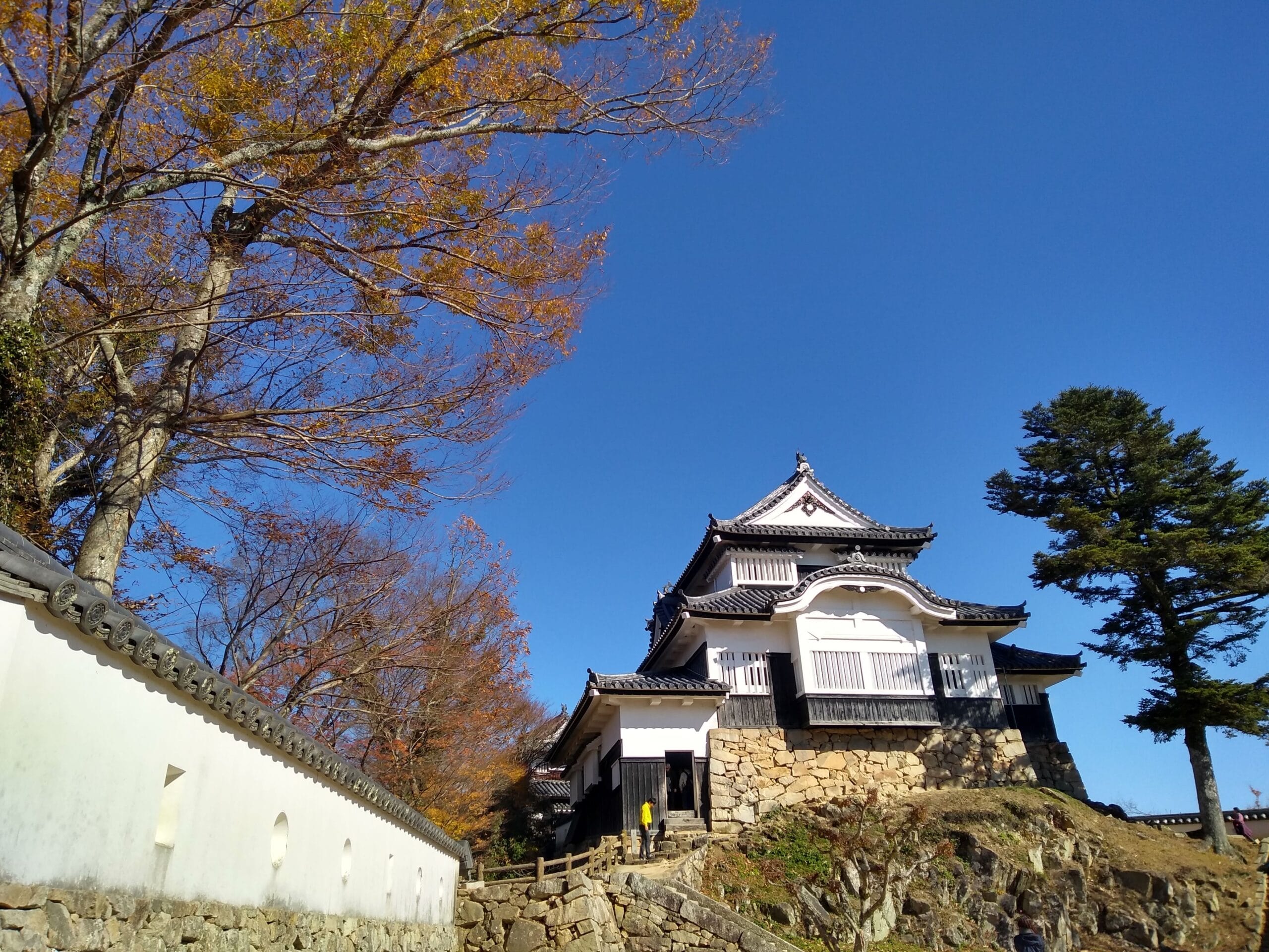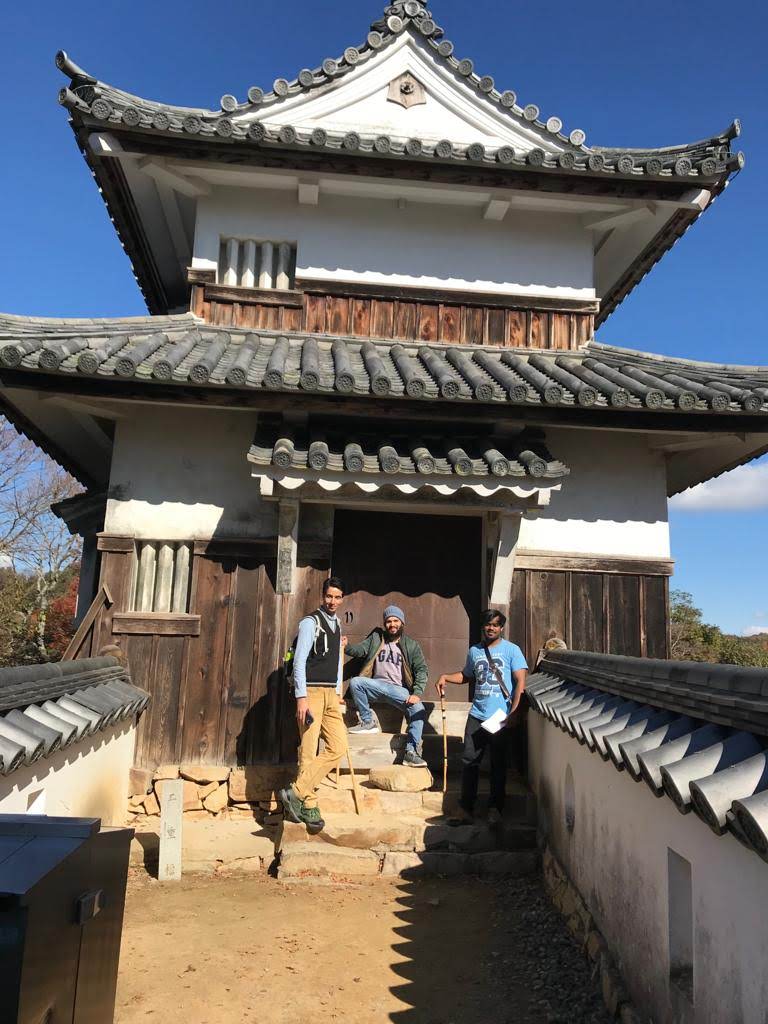 One can take a bus or a cab to a certain level up the mountain and then hike to the castle. But the four of us were pumped up and we hiked for an hour and half to reach the top of the mountain to finally find Bitchu-Matsuyama castle in front of us. Two things about the hike are worth mentioning and which I think happen almost anywhere you find yourself hiking in Japan. On our way, we met fellow hikers who were on their way down and each one of them either greeted us with a “konnichiwa” or “ganbatte ne”. That surely kept our spirits high on our long hike up the mountain. It was not an easy hike but at every turn the view was getting better and better. From the top of the mountain we got to see the whole townscape of Takahashi town and the autumn colors made the view even more magical.