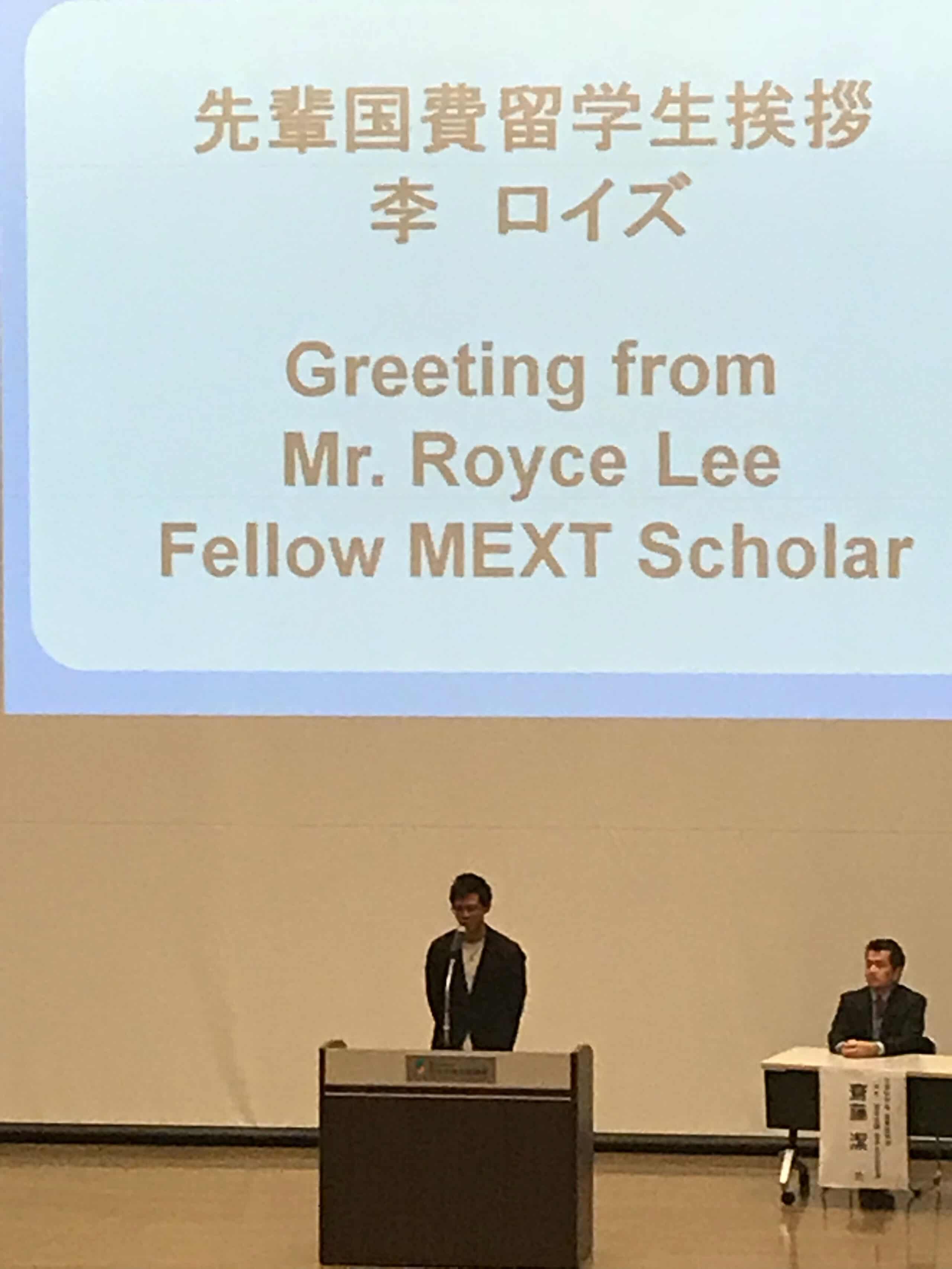 Greetings from Mr. Royce Lee at the Reception of MEXT scholars 2017, Tokyo
